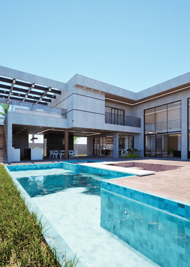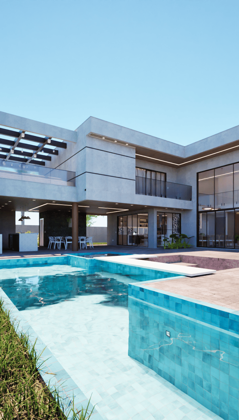A Casa Raia é um projeto residencial batizado pelo elemento que define sua experiência: uma piscina grande que atravessa o desenho da casa como uma raia. O nome reflete mais do que estética, ele sintetiza a lógica espacial. A raia organiza a casa, cria eixos visuais e atua como coração de uso e convivência. Foi pensada para quem vive a água como parte essencial do cotidiano e busca fluidez entre interior e exterior.O projeto equilibra conforto, proporção e funcionalidade, com atenção ao clima, ventilação cruzada e integração dos espaços sociais ao entorno aquático. É uma arquitetura com propósito: viver leve, conectando família, rotina e lazer em um só gesto.